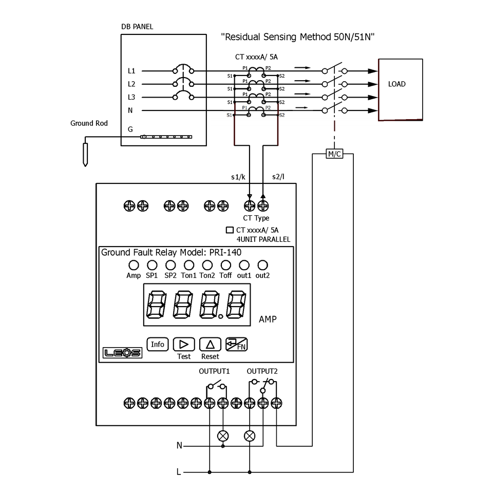 / Earth Leak Relay use with 4 CT xxx/5A